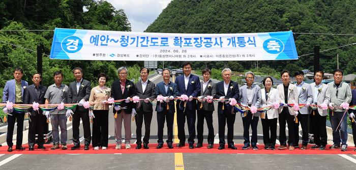 경북도는 26일 안동시 예안면 인계리에서 영양군 청기면 정족리를 잇는 지방도 920호선 예안~청기 도로를 개통했다.