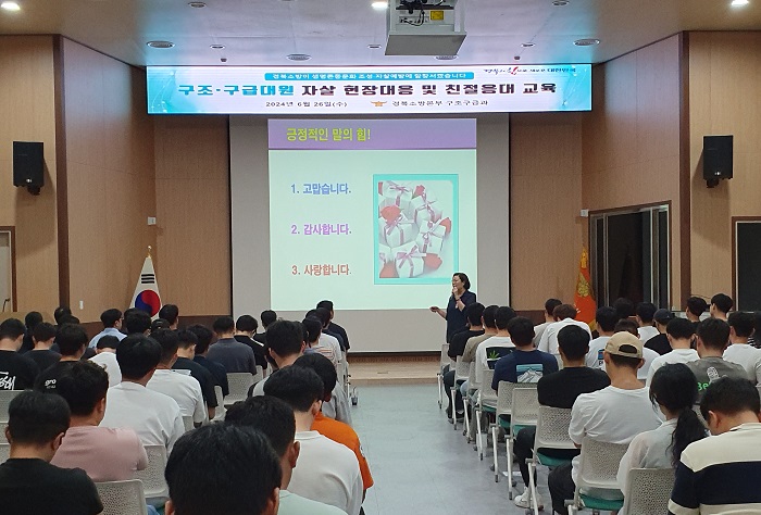 경북도 소방본부는 지난달 26일 구미소방서 대회의실에서 도내 구조·구급대원 140여명을 대상으로 전문 강사를 초빙, 자살시도자 대응 및 대국민 친절 교육을 실시했다고 1일 밝혔다.