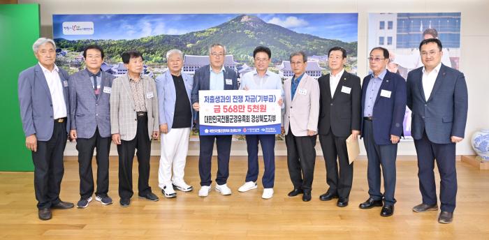 대한민국전몰군경유족회 경상북도지부와 대한민국전몰군경미망인회 경상북도지부 회원들이 22일 지방의 생존을 위협하는 저출생과의 전쟁에 써 달라며 경상북도 저출생 극복 성금 1,018만원(유족회 568만원, 미망인회 450만원)을 경북사회복지공동모금회를 통해 경북도에 전달했다.