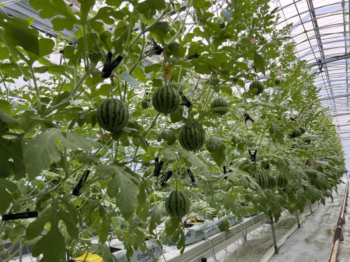 ‘미니수박 양액 수직재배 기술개발’은 최근 1~2인 가구 비율 증가로 인한 소과종 선호도 증가와 포복성 작물 농작업 부담으로 인한 수박 재배면적 감소가 맞물려 추진된 과제로 수직 재배 기술도입 시 농가의 근골격계 질환이 많이 감소하고, 노동력이 약 50% 절감될 수 있을 것으로 기대된다.