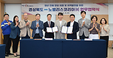 경북도는 21일 경북도청에서 경북도와 노벨리스코리아㈜ 간‘청년 인재 양성 및 지역 발전을 위한 업무협약(MOU)’을 체결했다.