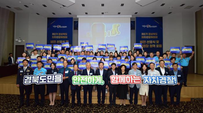 경북자치경찰위원회는 출범 100일을 맞아 도민이 원하는 자치경찰제를 실현하기 위해 앞으로의 비전을 제시하고 도민의 의견을 듣는 ‘제2기 경북자치경찰위원회 비전 선포식 및 정책 포럼’을 26일 안동그랜드호텔에서 개최했다.