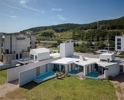 바다와 연계한 수평적 설계, 영덕 7번 국도변 펜션