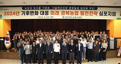 이번 심포지엄은 이러한 기후변화 위기를 극복하기 위해 경북의 지속 가능한 농업 발전 미래 전략을 논의하고, 기후변화에 따른 농업환경 변화에 대한 대응책을 모색하고자 마련됐다.