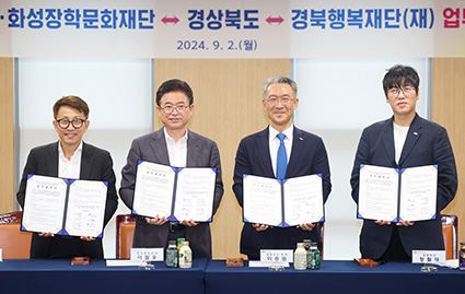 협약식에는 이철우 경북도 도지사, 이종원 HS화성 회장, 정필재 화성장학문화재단 상무이사, 정재훈 경북행복재단 대표이사가 참석했다.