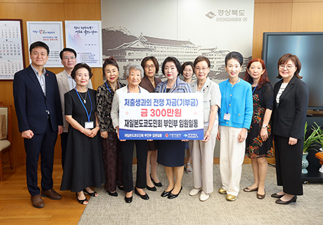 4일 재일본 도쿄(東京)경북도도민회 부인부 임원 등 10명이 경북도를 예방하고 지역의 저출생 극복에 동참하고자 성금 5백만원을 경북사회복지공동모금회로 전달했다.