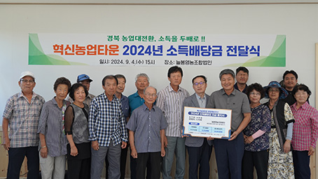 경북도는 지난 4일 문경 영순지구 혁신농업타운에서는 이모작 공동영농에 동참한 농가들이 참석한 가운데 소득 추가 배당식이 열렸다고 5일 밝혔다.