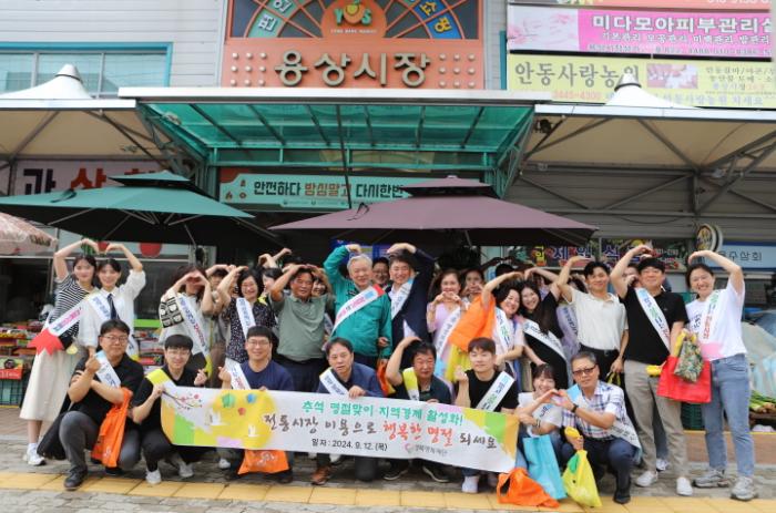 이날 전통시장 장보기 행사는 김학홍 행정부지사를 비롯해 도청 직원과 경북문화재단 직원 등 70여 명이 참여해 전통시장 활성화 분위기를 조성하여 지역 상인들에게 도움을 주기 위해 추진했다.