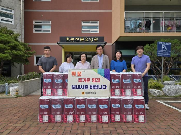 이날 방문은 풍요로운 한가위를 기원하면서 도의회에서 준비한 위문품을 전달하고, 시설 관계자 및 어르신들을 격려하였다.