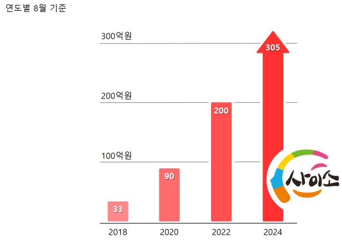 * 연도별 매출(억원) : 2007) 2 → 2010) 13 → 2015) 44 → 2020) 164 → 2023) 455 → 2024.8) 305