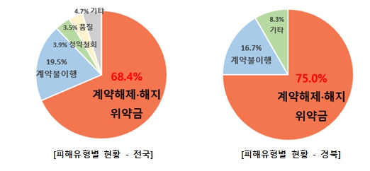 경북지역 역시 ‘계약해제·해지 거부 및 위약금’ 관련 내용이 36건(75.0%)으로 가장 큰 비중을 차지했다.