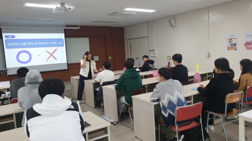 이날 연수에서는 선거연수원 초빙교수가 「선거와 정치참여」를 주제로,‘우리나라 선거제도의 이해’, ‘정치참여의 중요성’등에 대해 강의를 진행하였으며, 정치·사회적 이슈에 대한 토론을 통해 학생들의 다양한 생각과 의견을 공유하는 시간도 가졌다.