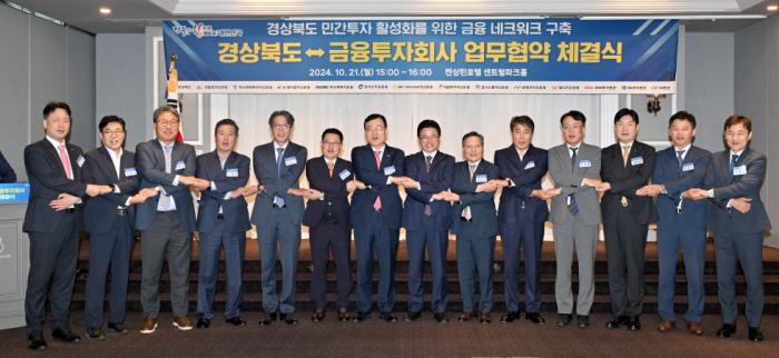 경북도는 21일 서울 여의도 켄싱턴호텔에서 13개 금융투자회사*와 ‘경상북도 민간투자 활성화를 위한 금융투자 네트워크 구축’업무협약을 체결했다.