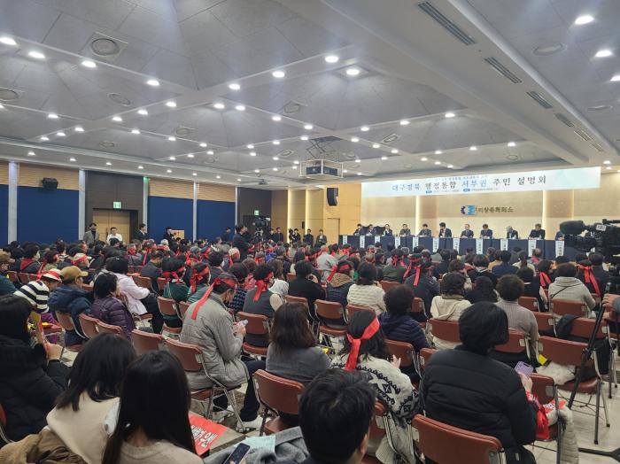 주민설명회는 정성현 행정통합추진단장이 행정통합의 필요성과 추진 경과, 주요내용 등에 대해 설명하였으며, 하혜수 경북대학교 교수가 행정통합과 관련된 과제와 쟁점에 대해 설명하였다. 이후에는 좌장인 최철영 대구대학교 교수, 계명대학교 김영철 교수 등 12명의 전문가가 주민들의 질문에 답변하는 시간을 가졌다.