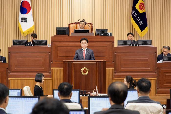 이철우 도지사는 21일 경북도의회 본회의장에서 진행한 2025년 시정연설에서 “어려운 경제상황과 재정 여건이지만 경북의 새로운 성장 동력을 발굴하기 위해 뼈를 깎는 변화와 중단 없는 미래투자가 필요한 시점이다”고 강조했다.