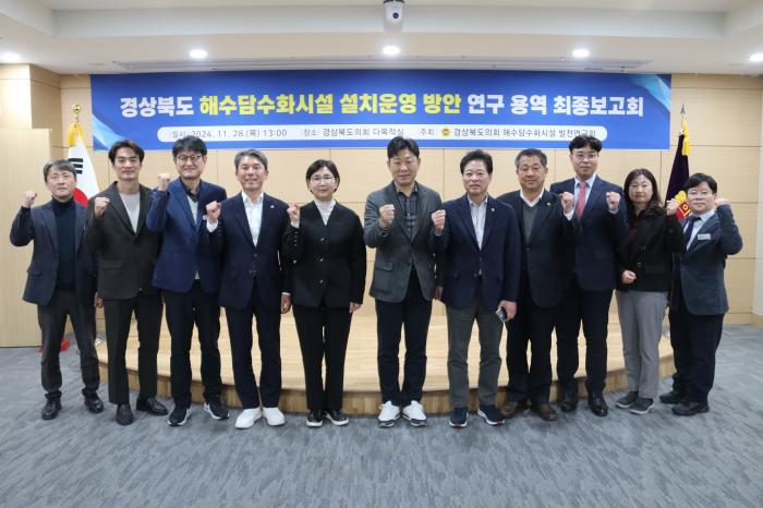 경북도의회 의원연구단체인 「경북도 해수담수화시설 발전연구회」(대표 박용선 의원)는 지난달 28일 도의회 다목적실에서 “경북도 해수담수화시설 설치운영 방안 연구 용역” 최종보고회를 개최했다고 1일 밝혔다.