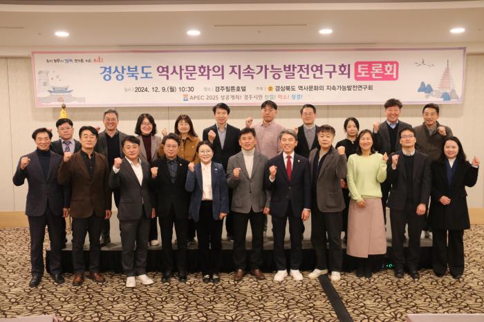 경북도의회 「경북도 역사문화 지속가능발전 연구회」(대표 정경민 의원)는 지난 9일경주에서 ‘경북도 역사문화 지속가능발전’을 주제로 토론회를 개최했다고 12일 밝혔다. 이번 토론회에는 정경민 대표의원과 연구단체 회원의원을 비롯해 경북도와 경주시 등 약 50여명이 참석했다.
