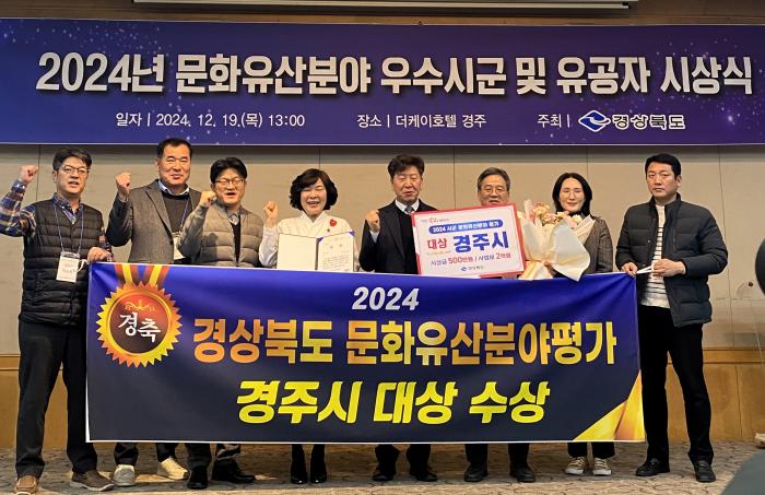 대상을 받은 경주시는 석굴암 일대 산사태 예방을 위한 긴급정비, 경주 역사문화 아카이브 DB 구축, 원도심 역사문화유산 종합정비계획 등 문화유산 안정적 보존과 주민 생활과 문화유산의 공존을 위해 노력한 점이 평가에서 높은 점수를 받았으며, 예산집행, 문화유산 신규 지정 등 모든 분야에서 탁월한 성과를 나타냈다.