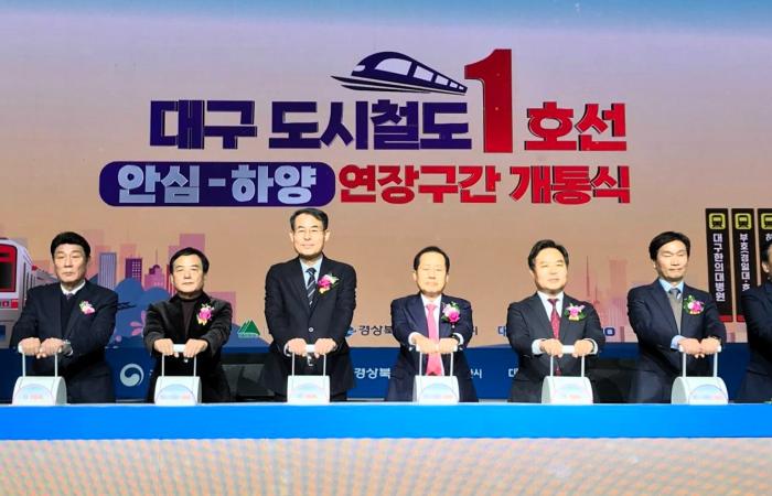 대구도시철도1호선 하양 연장 구간(안심~하양) 철도의 개통식이 20일 경산시 하양역에서 강희업 대도시권광역교통위원회 위원장, 이철우 경북도지사, 홍준표 대구시장, 국회의원, 인근 대학교 총장, 지역 주민 등 500여 명이 참석한 가운데 열렸다.