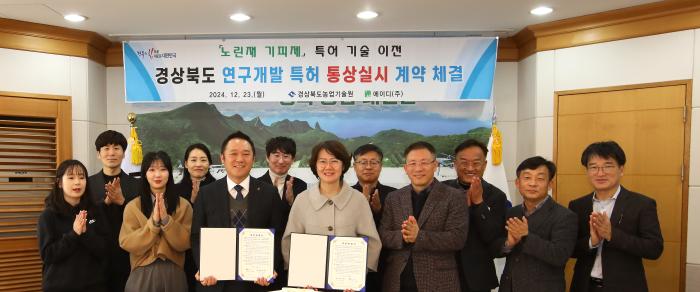 경북도농업기술원은 지난 23일 ‘노린재 기피제를 이용한 노린재 방제방법’ 특허 기술에 대해 곤충 페로몬을 이용한 친환경 해충방제 전문기업인 ㈜에이디와 통상 실시 계약을 체결했다고 25일 밝혔다.