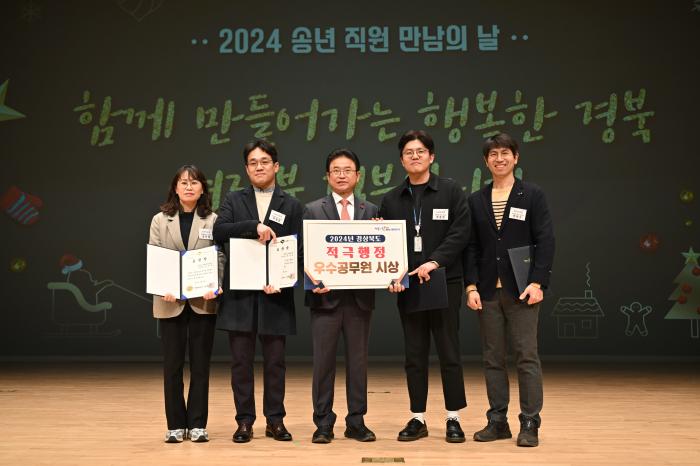 경북도는 지난 26일 도청 동락관에서 개최한 ‘2024년 송년 직원 만남의 날’ 행사에서 창의성과 전문성을 바탕으로, 적극적으로 업무를 처리해 선발된 2024년 하반기 적극 행정 우수공무원 5명을 포상하고 격려하는 자리를 가졌다고 27일 밝혔다.