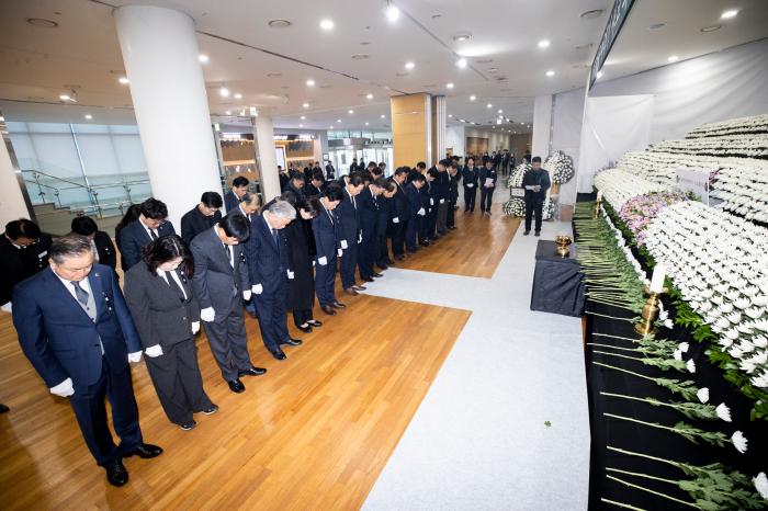 경북도의회 박성만 의장과 도의원, 의회사무처 직원들은 31일 도청 동락관 1층에 마련된 ‘제주항공 여객기 사고 사망자 합동분향소’를 찾아 헌화와 묵념을 하며 사고 희생자의 넋을 기렸다.