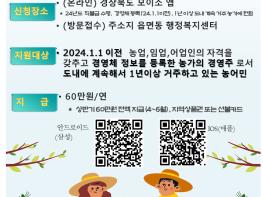 신청 대상자는 개별법에서 정하는 농업·임업·어업인의 자격을 갖추고 2024년 1월 1일 이전에 농업·임업·어업 경영체 정보를 등록한 농가의 경영주로서 같은 날 기준 도내에 계속해서 1년 이상 거주한 농어민이다.