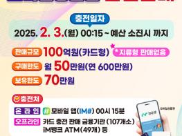 이번 판매 행사는 모바일 앱(iM샵)에서 2월 3일 00시 15분부터, 107개 판매대행점에서는 영업시간 내에 충전이 가능하다.