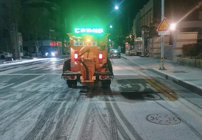 제설 및 결빙 예방 작업은 산업로, 태종로, 강변로, 대경로 등 시가지 주요 간선도로를 비롯해 국도 904호선·921호선, 군도 11호선에서 진행됐다.