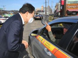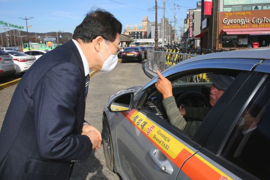 | 주낙영 경주시장이 교통 서비스 개선을 위해 택시 운수종사자와 의견을 나누고 있는 모습/경주시 제공 |