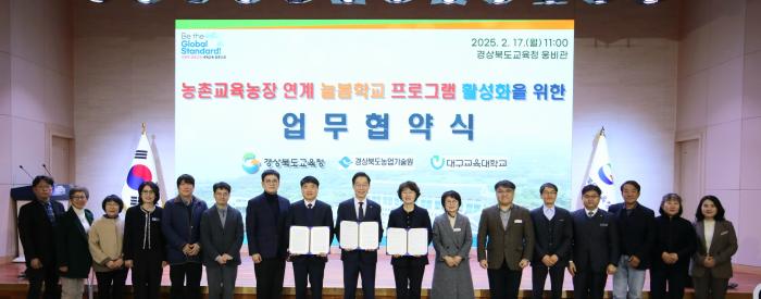 경북도농업기술원은 17일 경북도교육청, 대구교육대학교와 ‘농촌교육농장 연계 늘봄학교 프로그램 활성화를 위한 업무협약’을 체결했다.