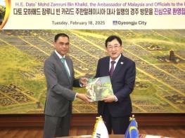 주낙영 경주시장이 다토 모하메드 잠루니 빈 카리드(Dato' Mohd Zamruni Bin Khalid) 주한말레이시아 대사를 18일 시청에서 접견하고, 양국 간 미래지향적 교류 및 협력 방안에 대해 의견을 나눴다.