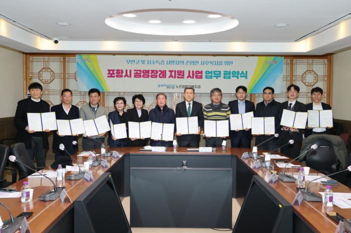 이번 협약으로 포항시와 포항시읍면동지역사회보장협의체, 포항 지역 소재 장례 업체는 상호 협력으로 공영 장례 지원체계를 구축해 저소득층과 무연고 사망자의 장례를 지원하게 된다.