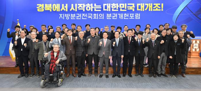 경북도는 지방분권전국회의가 25일 경북을 찾아 ‘지방분권전국회의 분권개헌 포럼’을 개최했다고 밝혔다. 최근 유력 정치인을 중심으로 분권개헌 주장이 잇따르는 가운데, 지방과 국민이 주도하는 분권개헌 논의가 경북도에서 가장 먼저 시작됐다는 점에서 큰 의미가 있다.