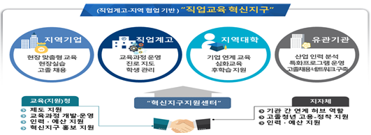 직업교육 혁신 지구는 지자체와 교육청, 직업계고, 기업, 대학이 협력해 지역 산업에 특화된 고졸 기술인재를 양성하는 사업으로, 경북도와 경북도교육청은 2022년 공모사업에 공동 신청 후 선정되어 2024년까지 3년간 사업을 운영했다.