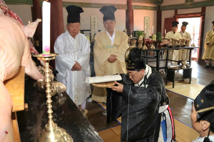 이날 초헌관에는 주낙영 경주시장, 아헌관에는 이진우 전 안강읍유도회장, 종헌관에는 서병진 전 현곡면유도회장이 맡아 각각 헌작했다.