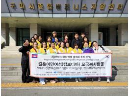 이번에 파견되는 결혼이민여성 모국봉사단은 캄보디아 시아누크빌 지역의 봇뱅초등학교와 삼롱구미학교를 방문해 학생들에게 교육용품을 전달하고, 전통의상 체험, 한국어 교육, 학교 환경정비 등 다양한 활동을 한다.