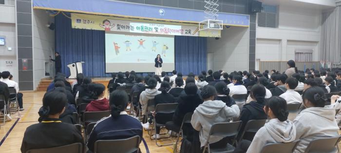 경주시는 지난 14일 내남에 소재한 삼성생활예술고등학교 화성관 강당에서 찾아가는 아동권리교육 및 홍보 캠페인을 실시했다.