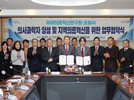 포항시와 미래의료혁신연구회가 지역의료 혁신과 의사과학자 양성을 위해 맞손을 잡았다.