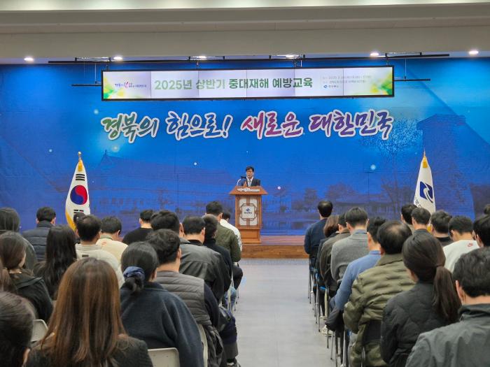 경북도는 20일 도청 화백당에서 도, 시군 및 출자·출연기관 직원 등 250여 명을 대상으로 ‘365일 중대재해 없는 안전한 경북’을 만들기 위한 ‘2025년 상반기 중대재해 예방 교육’을 했다.