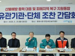 이강덕 시장은 31일 시청 연오세오실에서 지역 내 유관 기관·단체장과 산불 피해 지역 복구 지원 범시민 동참을 위한 간담회를 열었다.