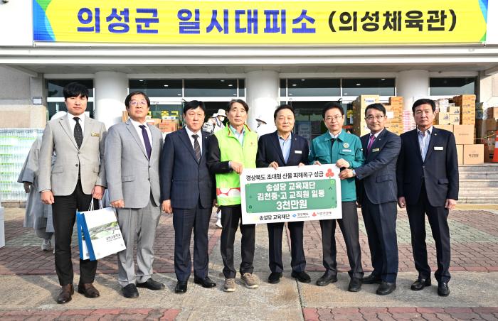경북도는 송설당교육재단과 김천중·고등학교 교직원들이 지난 31일 의성 산불 피해 복구를 위해 3천만원의 성금을 전달받아 경북사회복지공돔모금회에 기탁했다고 1일 밝혔다.