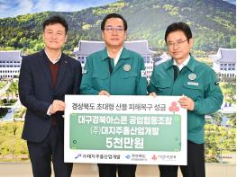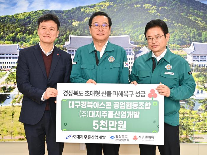 ㈜대지·주흘산업개발은 최근 발생한 대규모 산불로 인해 피해를 본 경북 지역 주민들을 돕기 위해 경북도사회복지공동 모금회에 산불 피해 복구를 위한 특별 성금 5천만원을 전달했다고 6일 밝혔다.