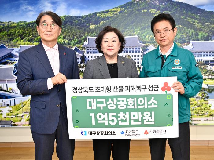 대구상공회의소가 지난 8일 경북도청에서 최근 발생한 경북 산불 피해 복구를 위해 성금 1억 5,000만원을 전달했다고 9일 밝혔다.