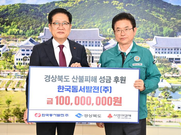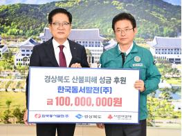 한국동서발전(주)는 지난 8일 경북도를 방문해 이철우 경북도지사, 경북도 사회복지공동모금회 관계자가 참석한 가운데 산불 피해 복구 성금 1억원을 전달했다고 9일 밝혔다.