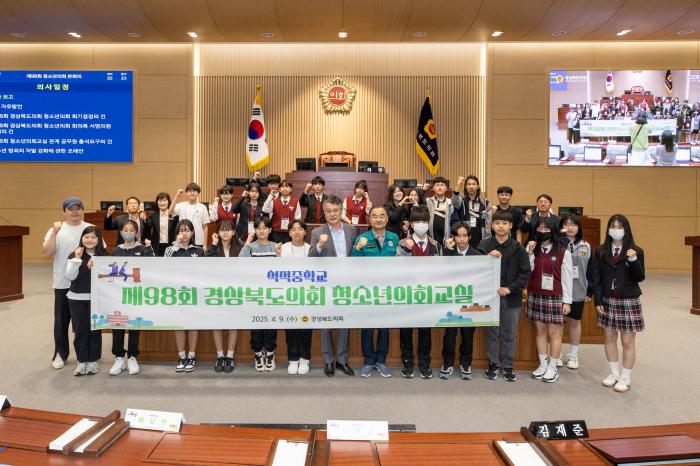 경북도의회(의장 박성만)는 9일 도의회 본회의장에서 칠곡 석적중학교 학생 25명이 참여한 가운데『제98회 경북도의회 청소년의회교실』을 개최했다.