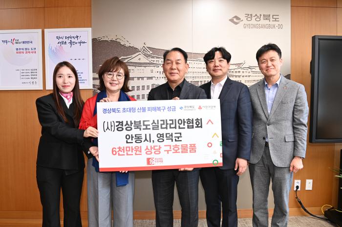 경북도는 (사)경북도실라리안협회가 지난 10일 경북도청을 방문해 경북 북부지역 초대형 산불 피해복구를 위한 성금 2천만원을 기부하고, 6천만원 상당의 구호 물품을 안동시 자원봉사센터와 영덕군청 복지과 2곳으로 나눠 전달했다고 11일 밝혔다.