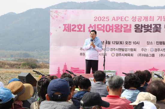 행사는 경주의 역사와 문화가 살아 숨 쉬는 선덕여왕길 황톳길에서 열렸으며, 만개한 왕벚꽃 아래 참가자들은 맨발로 걷는 이색 체험을 즐겼다.