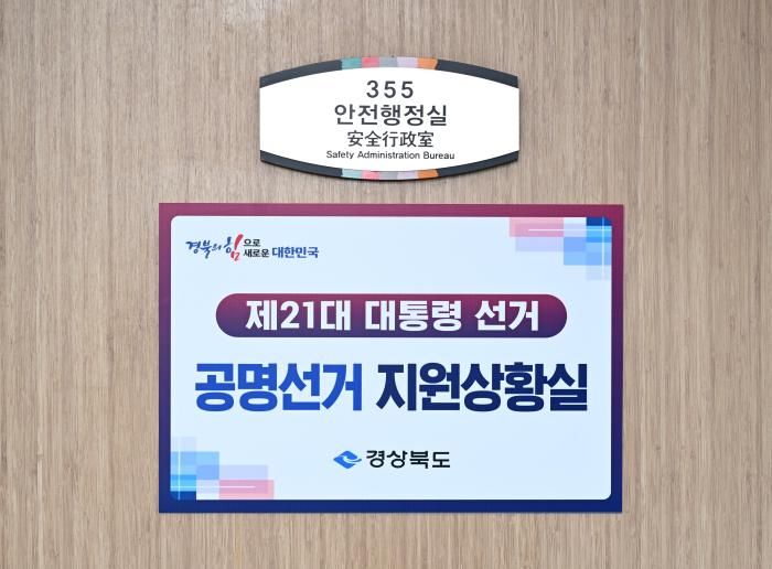 경북도는 오는 6월 3일 실시하는 제21대 대통령 선거가 공정하고 투명하게 실시될 수 있도록 선거관리 및 법정 사무절차의 철저한 추진을 위해 경북도 행정지원과 사무실 내 지난 16일부터 선거일까지 ‘공명선거 추진 및 지원상황실’(이하 ‘상황실’)을 개소한다고 17일 밝혔다.