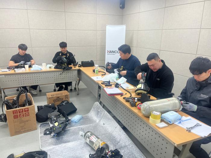특히 이번 점검에는 소방장비관리센터 호흡정비팀과 ㈜한컴라이프케어 전문 A/S팀이 함께 참여해 장비 성능 검사, 부품 교체, 세척 작업 등 체계적인 절차로 총 110점의 호흡 보호장비의 정비를 완료했다.